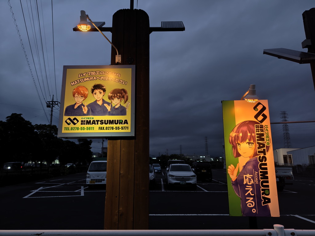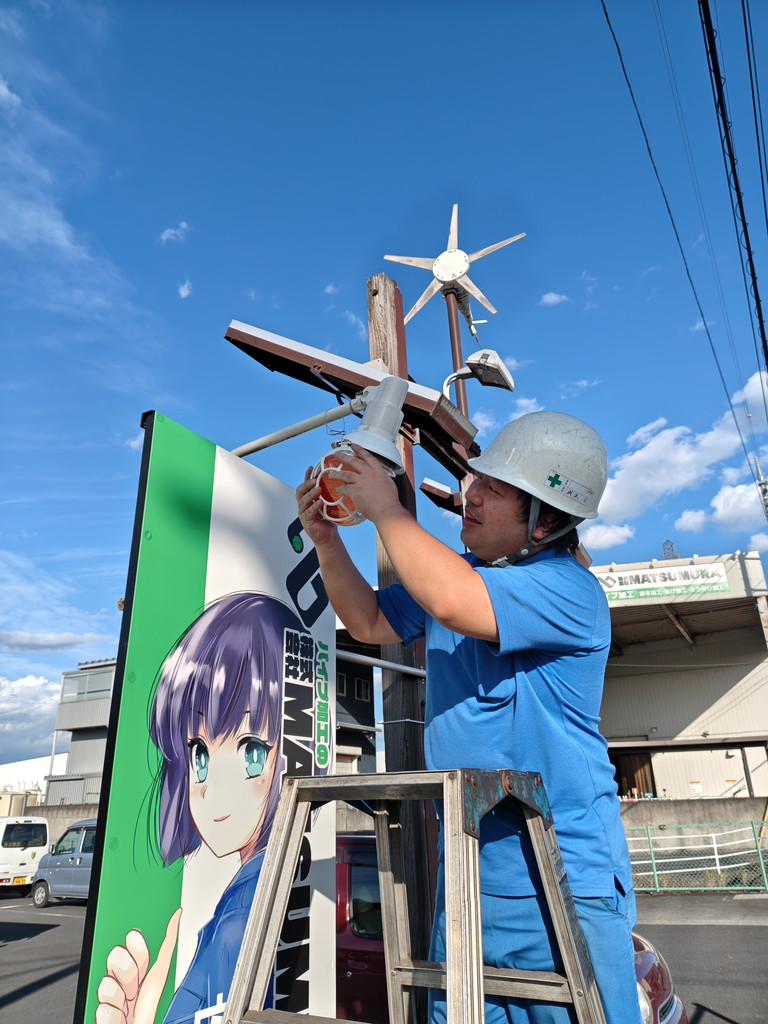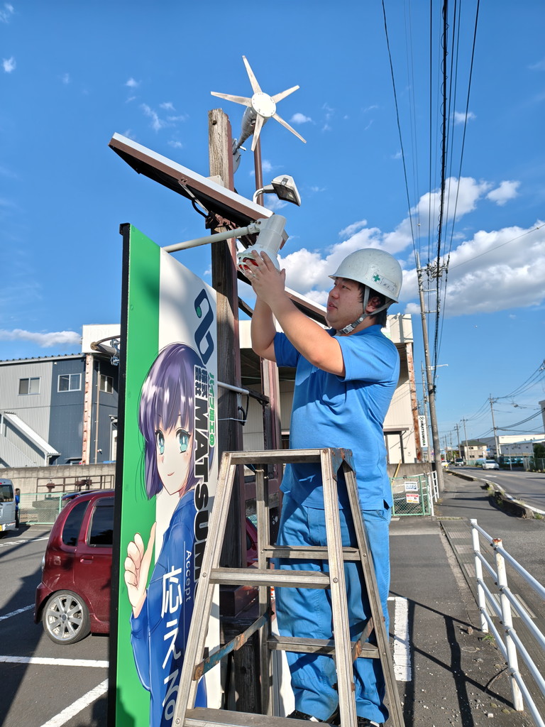 MATSUMURAは駐車場にあります自社製の小型風力・太陽光ハイブリッド照明灯をオレンジ色にしてこの活動へ参加いたします。