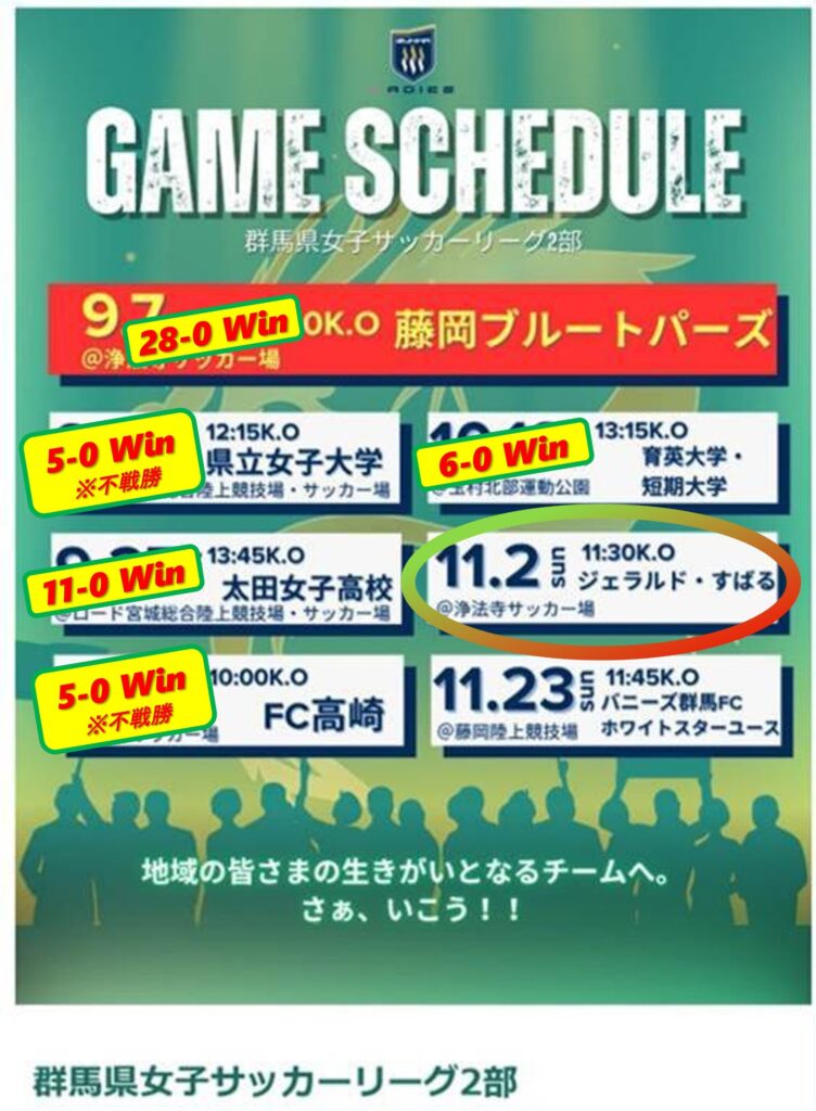 また、翌日の11月2日(日)はMATSUMURAも応援していますザスパ群馬ルミナスのリーグ戦6試合目が行われます。
