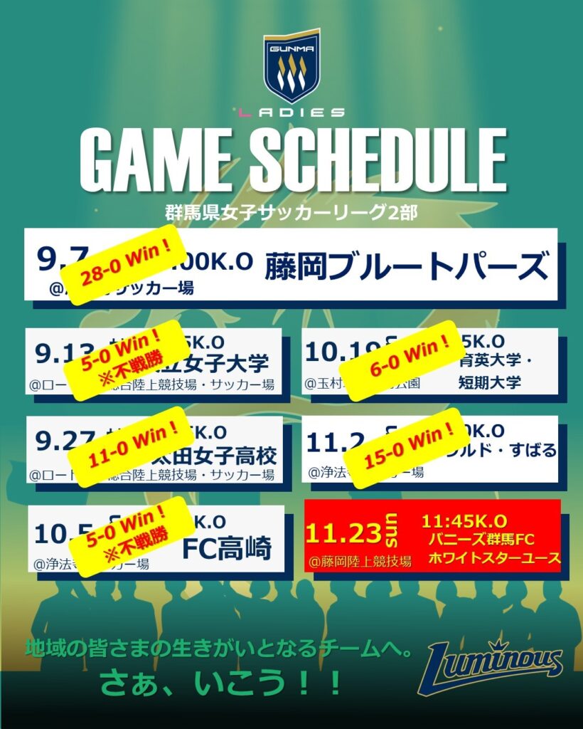 そう、MATSUMURAも応援ていますザスパ群馬ルミナスのリーグ戦最終戦も11/23開催されます!