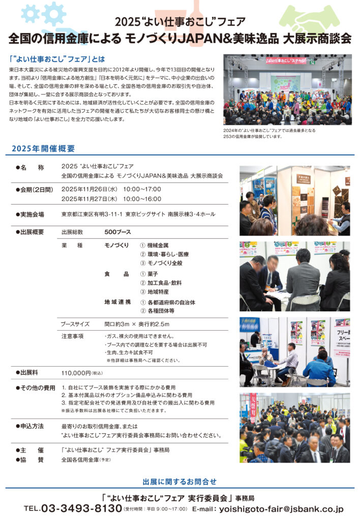 当社は今週 11月26日(水)~27日(木)、東京ビッグサイトで開催される 「よい仕事おこしフェア」 に出展いたします。