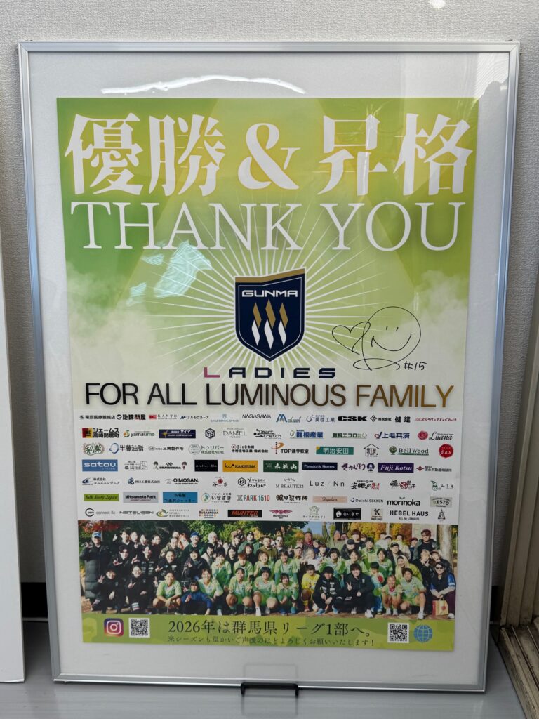 2025シーズン 群馬県女子サッカーリーグ2部において、最多得点・無失点で全勝優勝したザスパ群馬ルミナス⚽