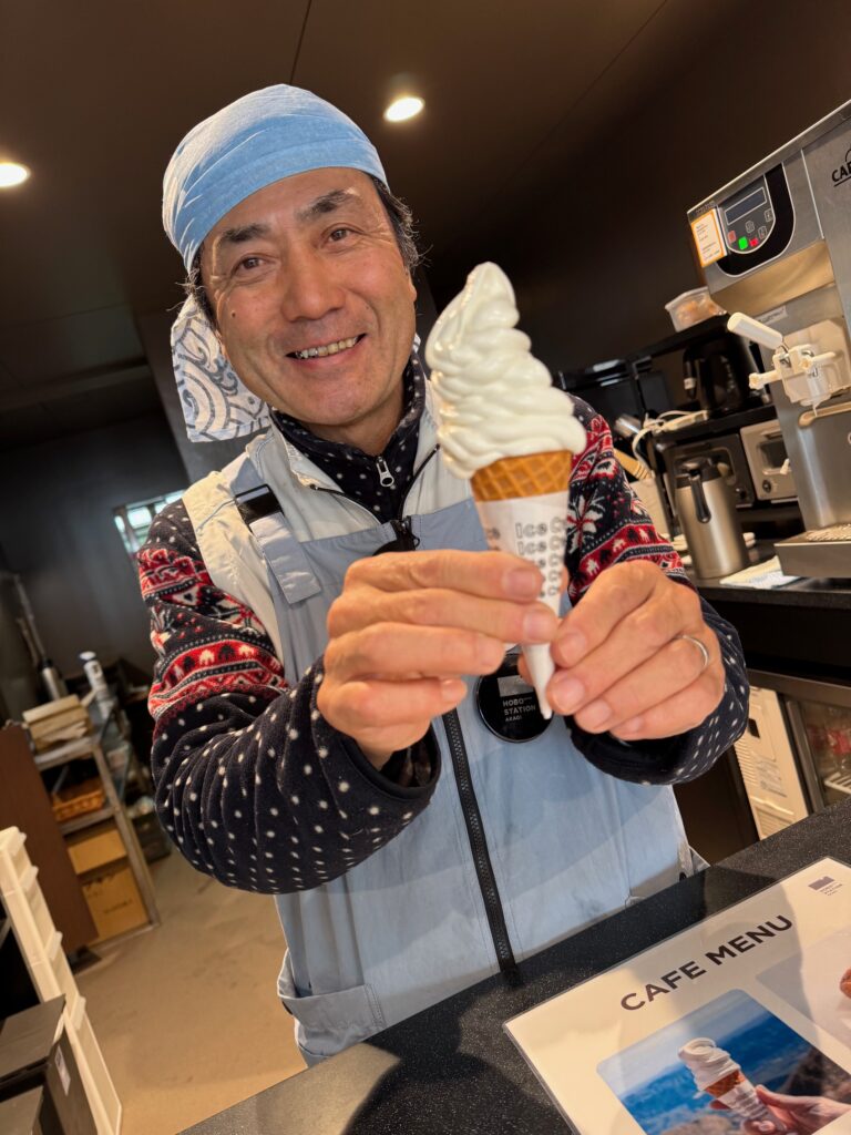 ほぼの駅AKAGIになってからもこちらに勤めておられ、今回もソフトクリームを巻いていただきました♪