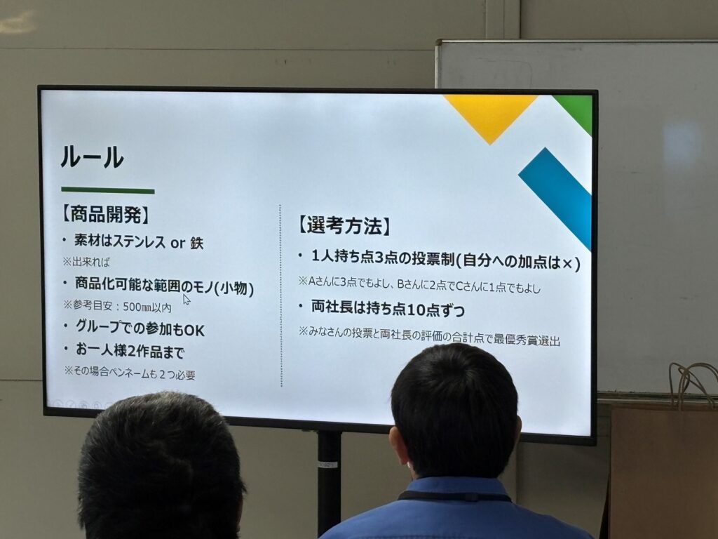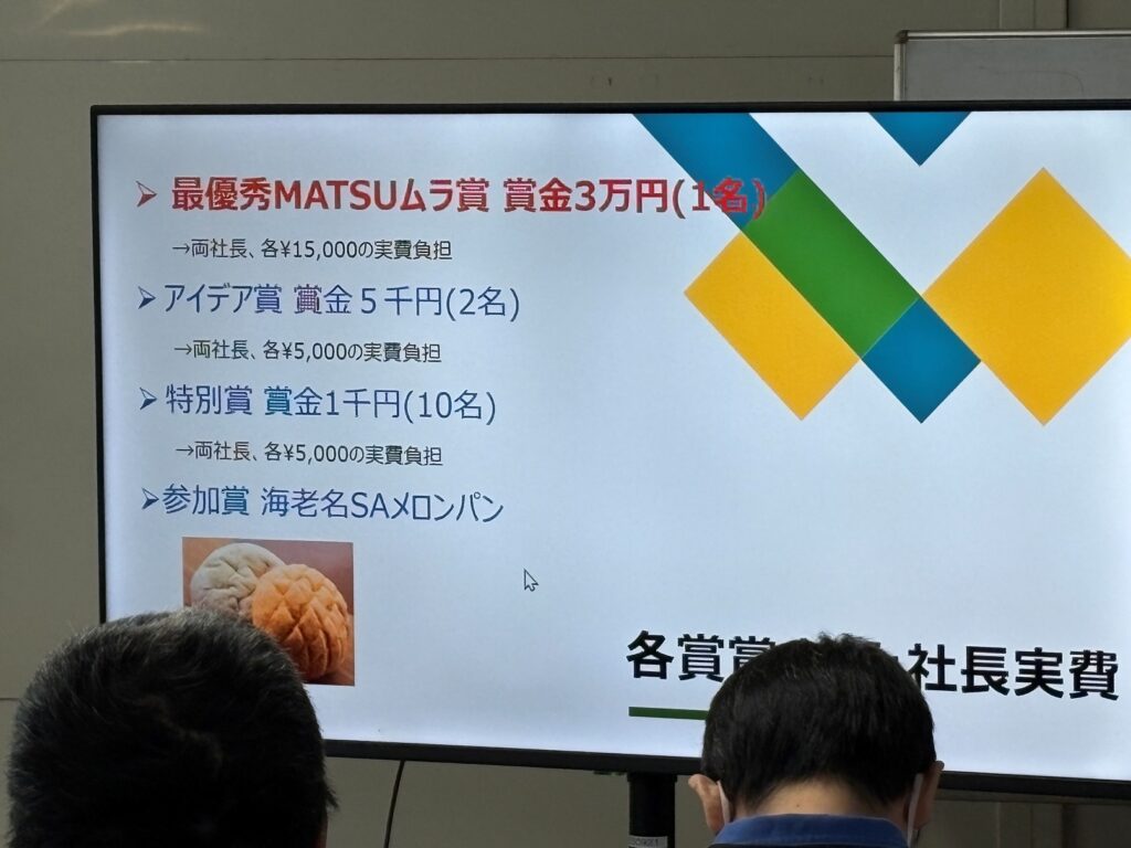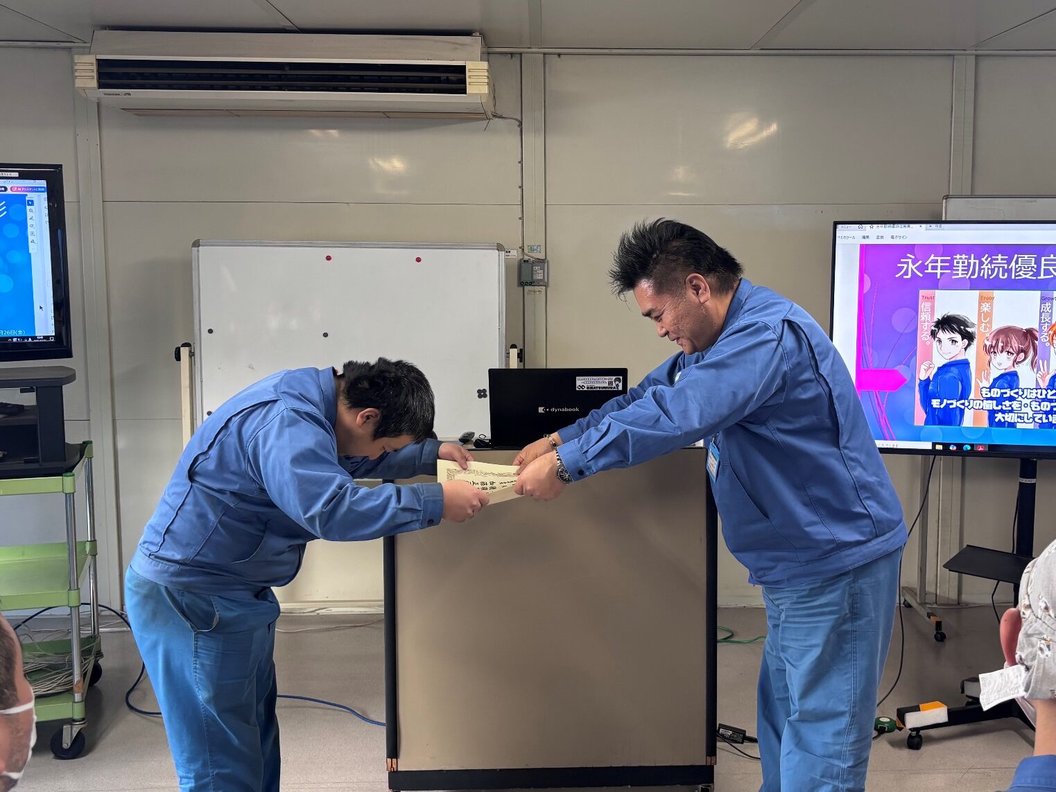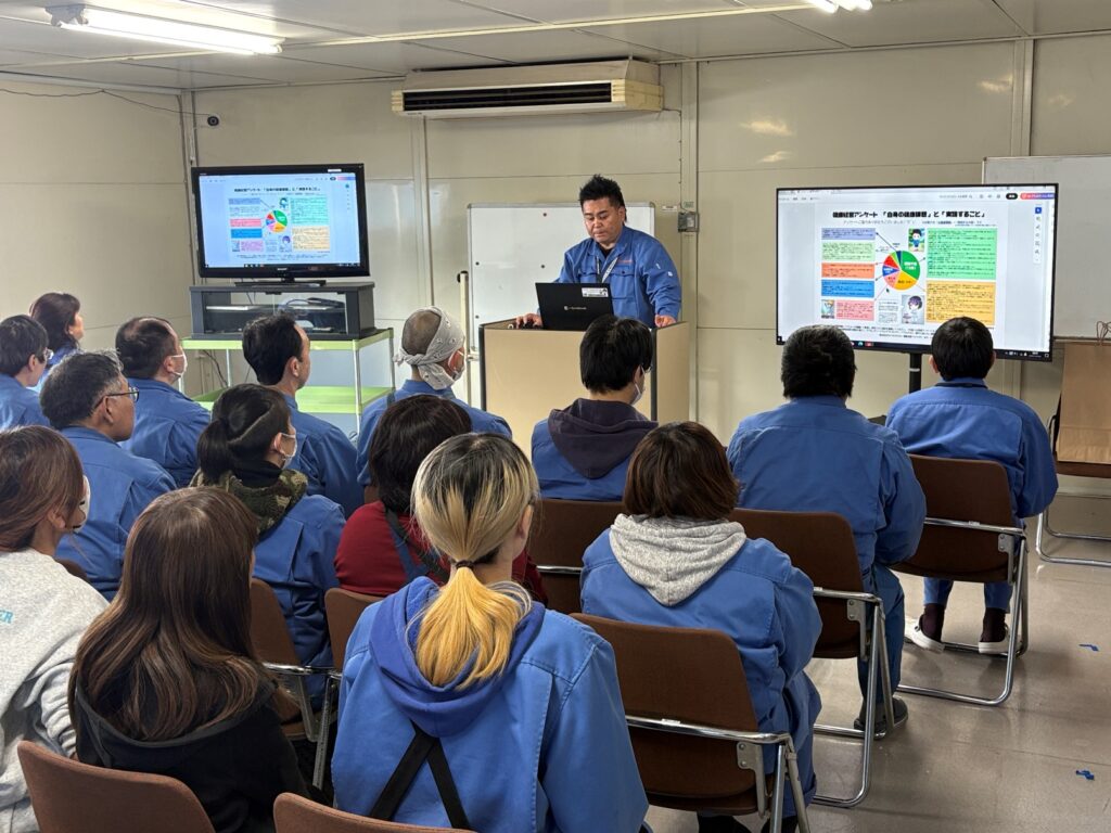 健康経営今後の進め方から始まり、新企画(コラボ企画)のお話、永年勤続優良従業員表彰、締めの言葉の流れです。