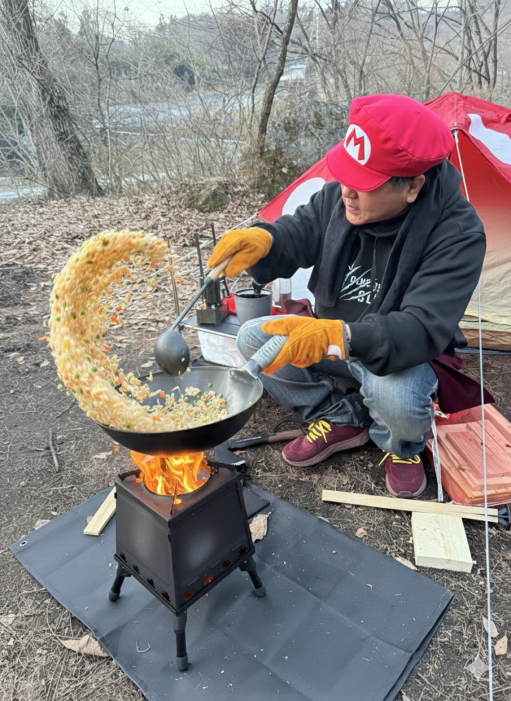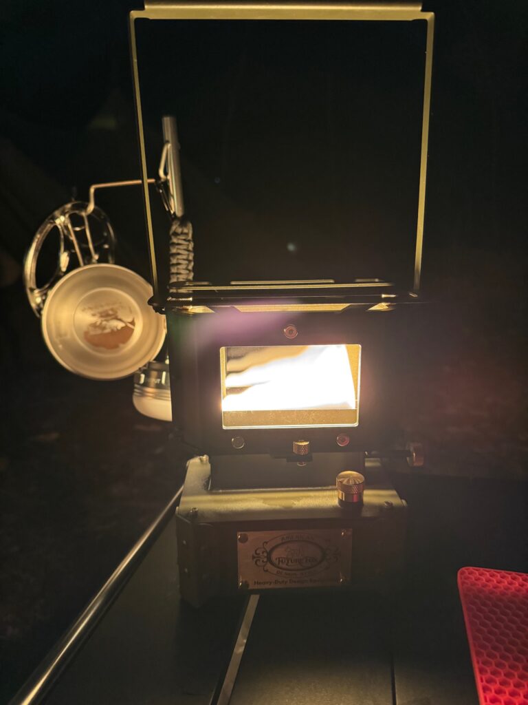 - アイロンランタン(FUTURE FOX): 揺らめく炎が最高に渋い。これ、明かりとしてだけでなく、上でお肉を焼いたりお湯を沸かしたりと、まさに「仕事ができるヤツ」でした。