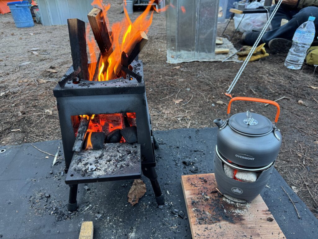 - 薪ストーブ: あえて小型をチョイスしましたが、これが大正解!煙も少なく、とにかく暖かい。