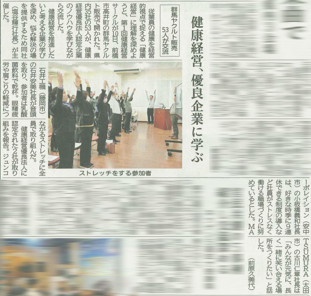 上毛新聞電子版記事はこちら →健康経営、優良企業に学ぶ 群馬ヤクルト販売53人が交流